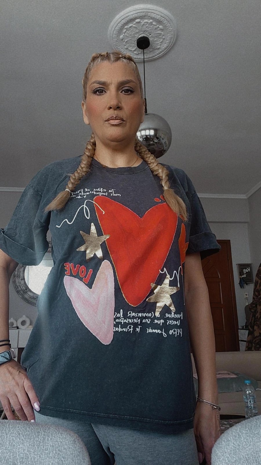 ΓΡΙ ΠΕΤΡΟΠΛΥΜΕΝΟ T-SHIRT ΜΕ ΜΙΑ ΚΑΛΛΙΤΕΧΝΙΚΗ ΑΠΕΙΚΟΝΙΣΗ